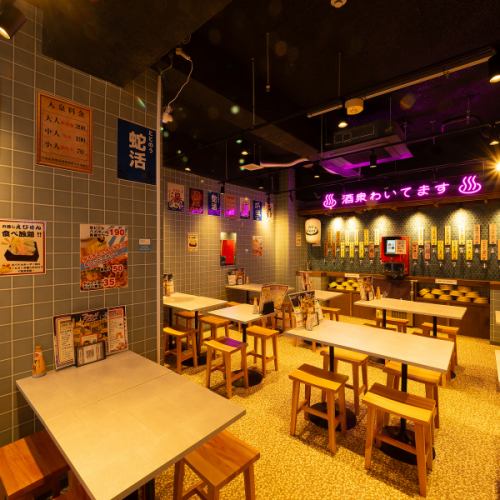 【銭湯をイメージしたレトロ空間は宴会にもデートにもおすすめ♪】お仕事帰りのちょい飲みから大人数での飲み会やパーティーまで、様々なシーンに対応可能なお席をご用意しております!あのテルマエが川越に!